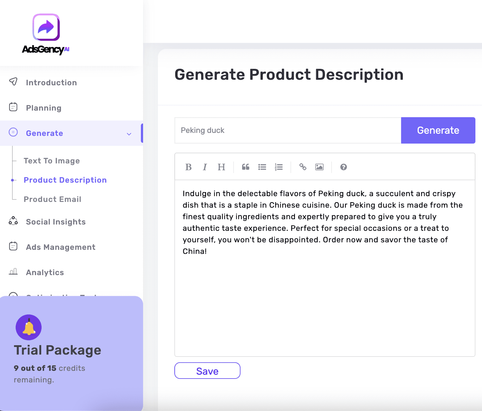 AdGency AI is an AI-powered platform that creates, manages, and optimizes ads for various types of marketing campaigns. It provides real-time data solutions, analytics dashboards, and optimization recommendations with the intention of helping maximize return on investment (ROI) by identifying areas for improvement. The platform streamlines the entire process, from automatically generating content to providing AI-based recommendations, eliminating the need for additional edits.