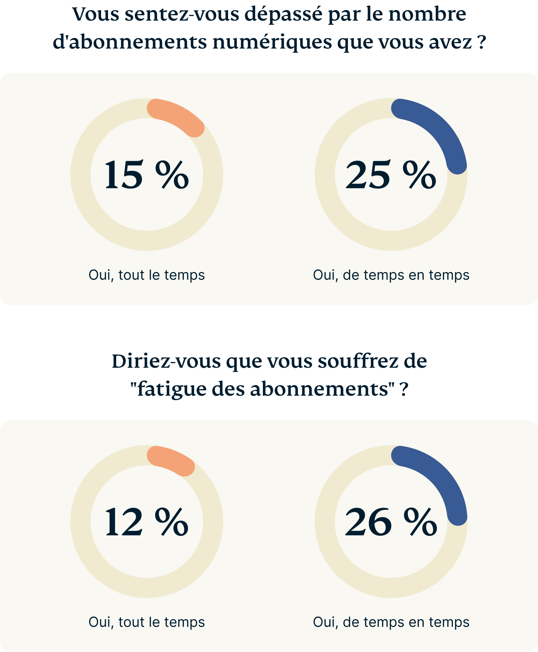 Au-delà des coûts et de l'appareil utilisé, la gestion de multiples abonnements peut entraîner une surcharge mentale. Selon notre sondage, 40 % des répondants se sentent submergés par le nombre d'abonnements qu'ils doivent gérer.