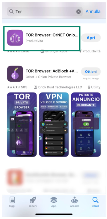 - Scarica Onion Browser dall'App Store (è quello consigliato da Tor Project).
