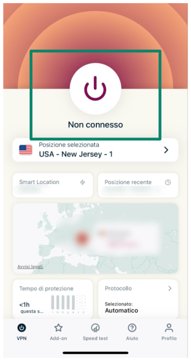 - Premi il pulsante di connessione per cambiare il tuo indirizzo IP.