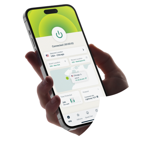 ExpressVPN’s custom Lightway protocol creates a secure tunnel between your mobile device and the internet.