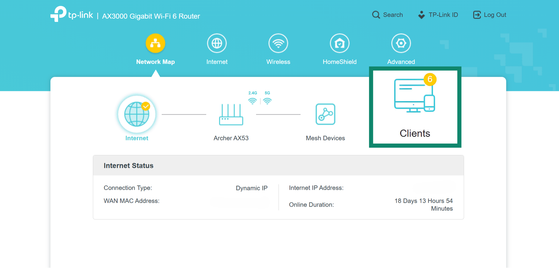 3. Once inside, check for the Clients, Connected Devices, or Attached Devices options.