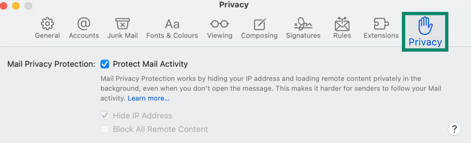 Apple Mail Privacy settings.