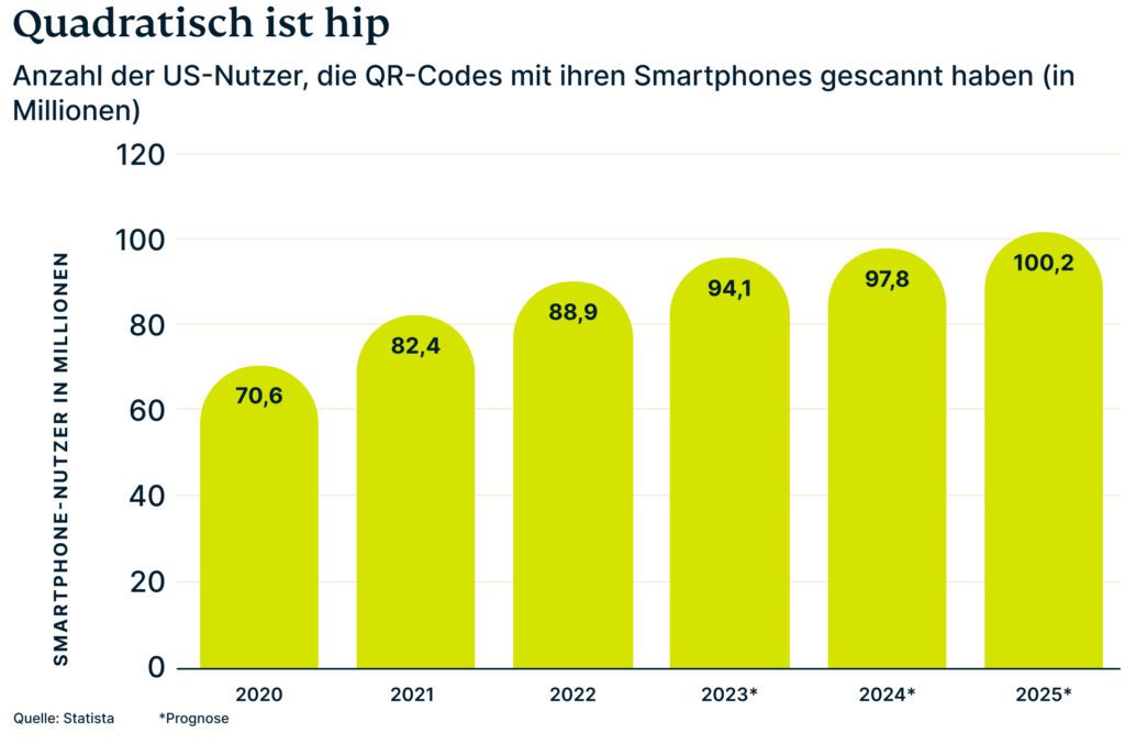 Laut einer aktuellen Studie von Statista ist der Prozentsatz der Handynutzer, die einen QR-Code gescannt haben, in den letzten zwei Jahren um 26 % gestiegen, was noch einmal bestätigt, wie sehr die Gesellschaft diese Technologie akzeptiert hat.