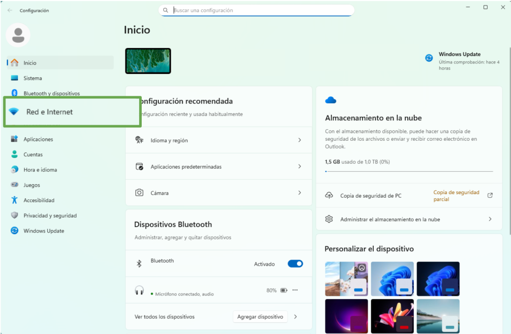 - Pulsa Windows y la tecla I al mismo tiempo para acceder a la Configuración. Luego haz clic en Red e Internet.