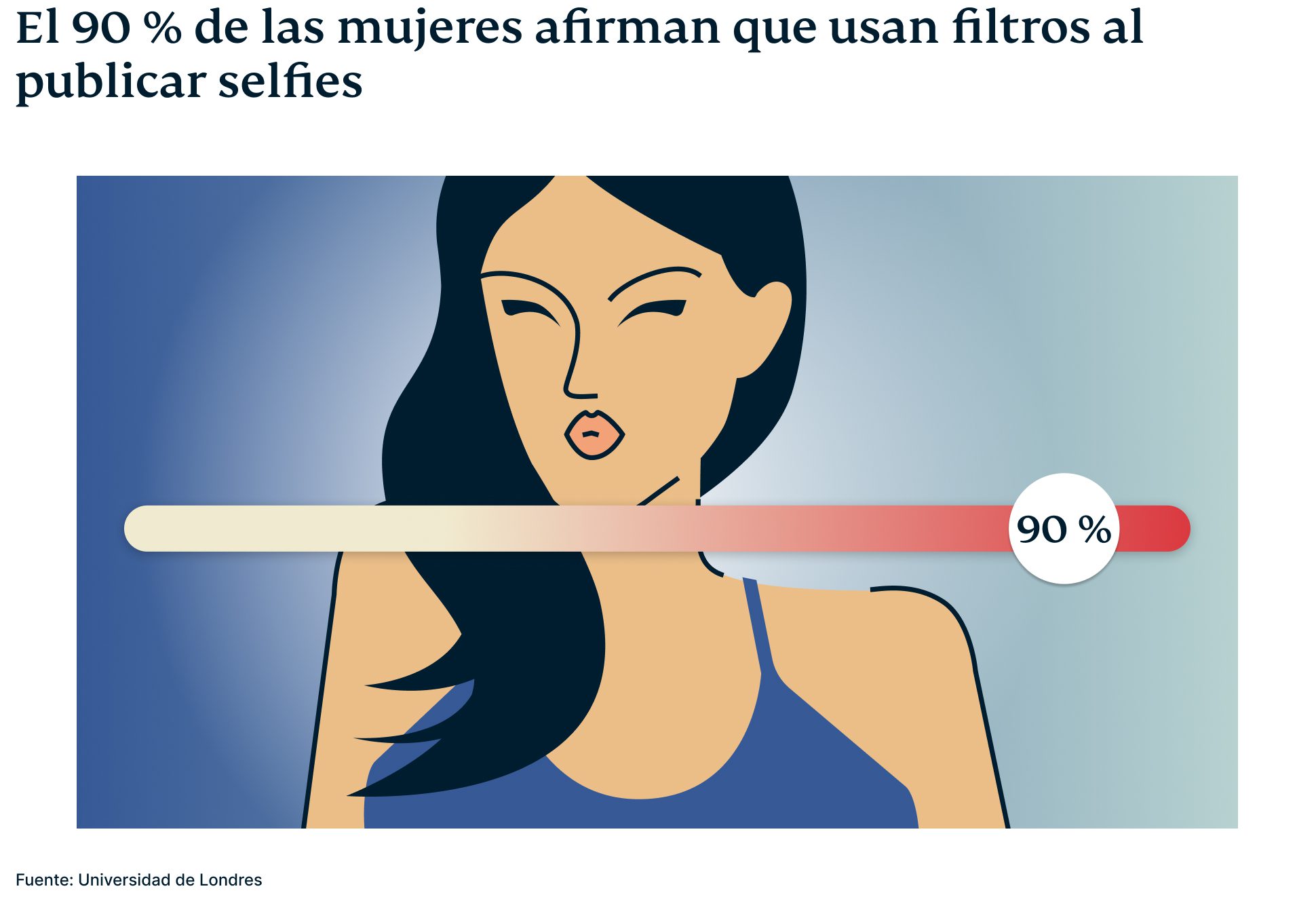 Los filtros también desempeñan un papel importante en modelar las apariencias online. Tanto hombres como mujeres admitieron que usaban filtros ocasionalmente para aumentar su atractivo. Sin embargo, las mujeres resultaron ser las usuarias más frecuentes, con 9 de cada 10 admitiendo que incorporaban filtros al publicar selfies en redes sociales.